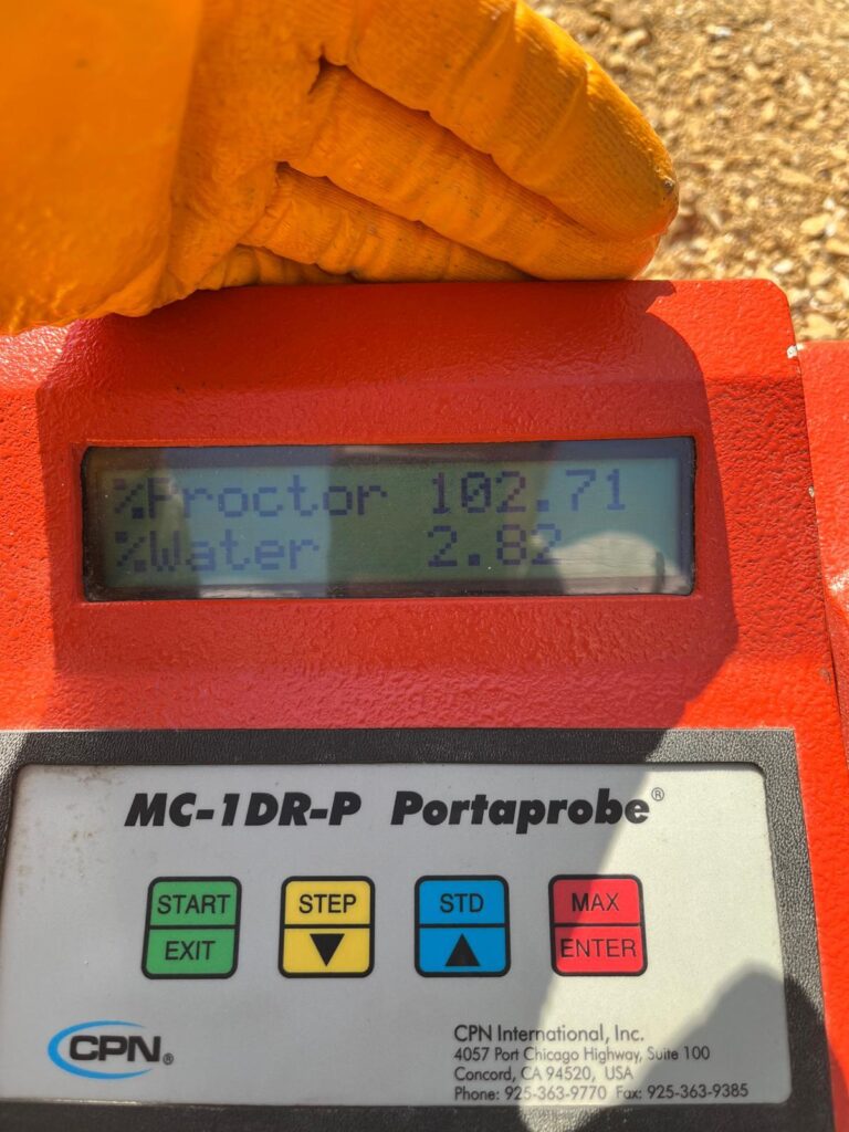 Arazide sıkışma kontrolü: Ya nükleer Proktor Testi ile bulunur, ya da kum konisi deneyi ile. Her iki yöntemde de laboratuvar da yapılan proktor deneyinden elde edilen yoğunluk ve nem değerleri kullanılır.